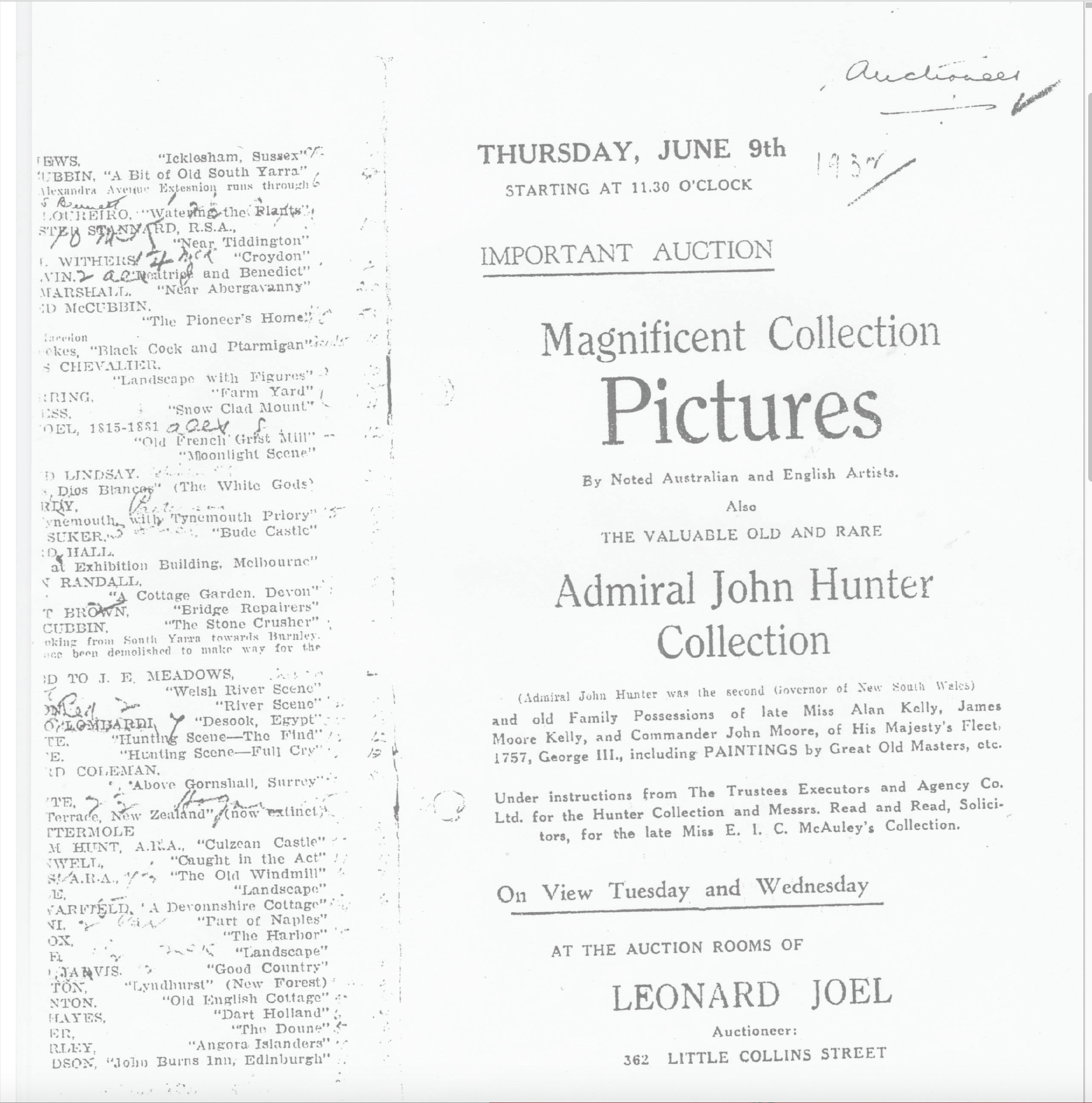 Joel's Auction House, Collins St, Melbourne for auction on 09.06.1932.