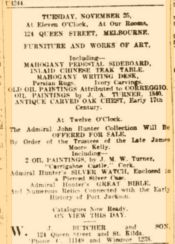 W J Butcher Auction House, 124 Queen Street, Melbourne, on 25.11.1924 newspaper ad from 24.11.1924.